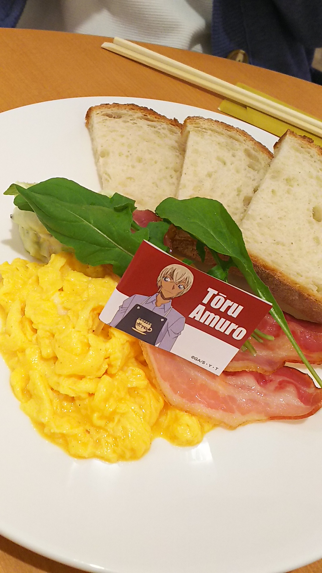 安室さんの旗がささってるのは、相棒が頼んだポアロのモーニングプレート。普通に美味しそうだった。