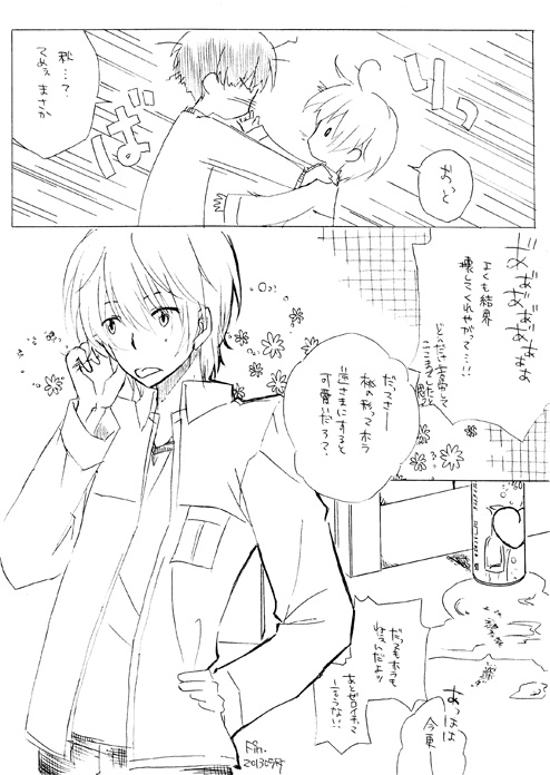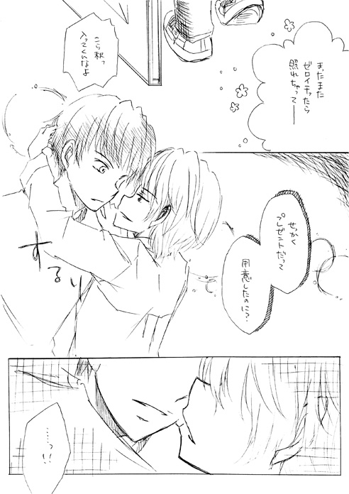 まさかの秋誕スルーで零一誕。 やめろ…っ!と当人に言われちゃいそうですが、にっこり笑って桜庭さんのバースデーを祝いたいと思います。 全然祝ってる雰囲気のない内容ですが、まぁお気になさらず。 追記に畳むのは、腐向けっぽい表現があるからです。 苦手な方は全力回避を推奨します。騙されたと思って試してみて、新たな扉を開いちゃっても、私は責任負えません。 好物な方は、期待しすぎてがっかりされませんよう。 あくまで『っぽい』だけですから。 そんなこんなで前置きが長くなりましたが、追記に深山木さんと零一氏のマンガ3p、PC閲覧を推奨致します。 興味のある方は、ぜひどうぞ。 2013/05/19(Sun) 21:19:50