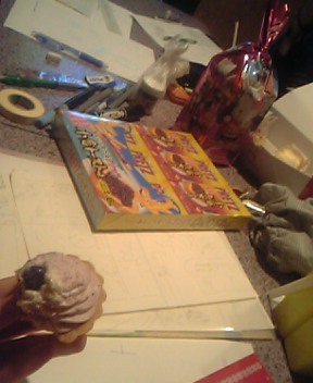 添付は、食糧と画材と、これから原稿になってゆく予定のものたち。 友樹さんのハッピーバースディも含まれておりました^^ 「お互いの原稿やるとこ見たいね!」 「じゃあ一緒にやろうぜ!」 「いっそ合宿しよっか」 「それなら地元にぴったりなとこあるよ」 とゆーやり取りの末、割とあっさり決行された原稿合宿。 with玲耶さん、友樹さん、かいさんの、最近『いつものメンバー』になりつつある顔ぶれで。 要はカラオケで、オールナイトで、お互い覗き合いつつ原稿やろうぜ、な会合です。 とりあえず私、彼氏にするなら沢村と、浅月はクラスメイトに、とゆー話しか思い出せないんですがどうしたら。 きっと皆のレポを読んで回れば、何となく全体像が分かると思いますよー、と投げておく。 でも原稿的には、みんな無事目標達成できました。 むしろ時間が余って遊んでる中、私はいそいそと獄クロ原稿に線引いてました・・・明け方に向けて、我ながら素晴らしいやる気を発揮していた。あれはギリギリの集中力です。(何) 大変楽しく、非常に興味深く、とても濃い一夜でした。 勉強になった、というよりは、ひたすらに面白かった、という感じでしょうか。 沢山線を引くにしても、かいさんは全部1枚の紙にやるのに対して、玲耶さん(@スキャナ持込)はどんどん紙が変わっていくとか、仕事が速くて目が離せない友樹さんとか、ホント面白かった。 なかなか機会がないからね。またやりたいな。合同本とかも出来たら良いよね。 あと、線の違いは画材の違いではなく、9割が自分の腕に拠るところなのだということがはっきりしました。 確かにペン先ひとつにも、メーカーの差というのは如実にありましたが。 私のペンを玲耶さんに使ってもらったら、私には絶対出せないような線がするりと現れたのです。 それはとても信じられない光景でしたが、同時にどこかすっきりする出来事でもありました。 そうか。ウチの子も、やれば出来る子だったのか。 ちなみに皆と別れた後は、素直に電車に乗れば良いものを、あまりの好天っぷりとポケットの音楽に気を良くして、1時間歩いて帰り、結局日中は完全に寝潰してしまいましたとさ。