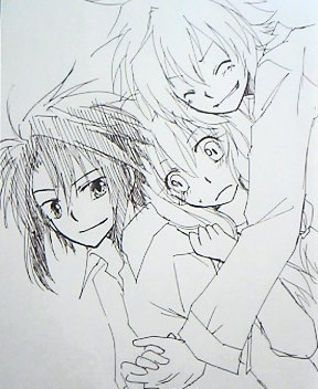 で、次いで歩を挟むようになって、結崎さんが火澄にくっつきすぎだ!って怒ってて、何だ羨ましいのか、じゃあおさげさん間にいれたるよー!って今ここ。