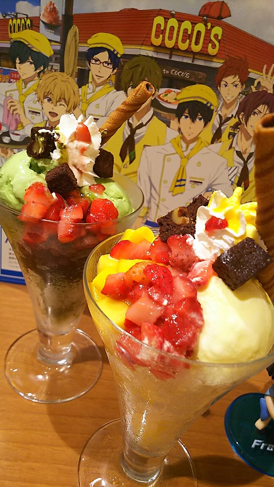 友人と2人仕事上がりに、遙さんのドルフィンプレートと渚&真琴のパフェ食べてけらけら喋ってきた。ココスおいしいよね~。
