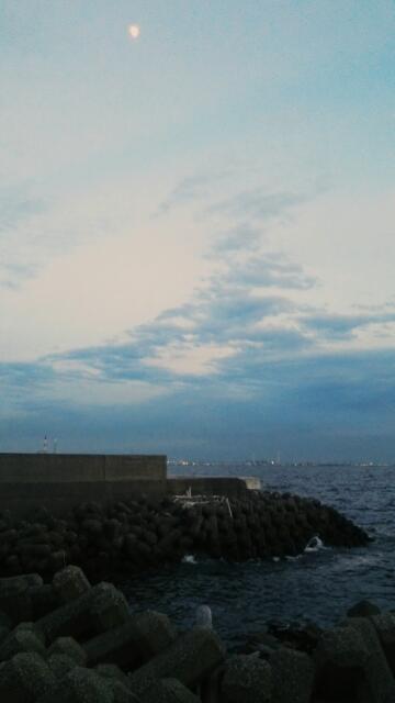 最終的には海に辿り着いていた私…思わず写メったので添付します。上の方に浮かぶ月。これ友達に送ったら、なにやってんの!?って心配されました。笑